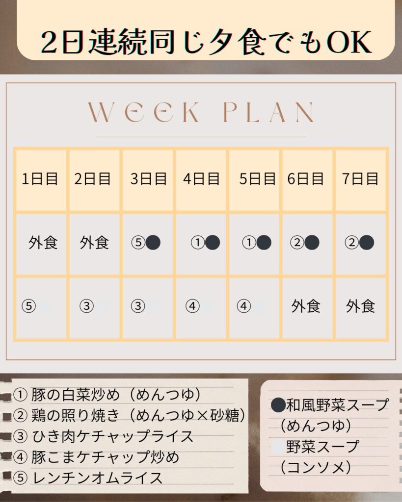 このウィークプランを丸々真似して楽をしちゃいましょう。